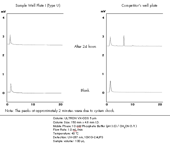 HPLC mobile phase sealed in each well plate was analyzed after 24 hours to determine the presence or absence of eluted components.