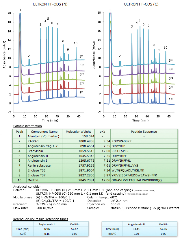 Repetitive peptide separation by ULTRON HF-ODS
