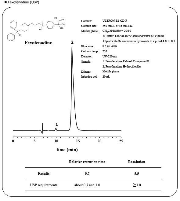 The ULTRON ES-CD-F corresponds to L45, has been confirmed to meet the System suitability accordance with USP under strict quality control.