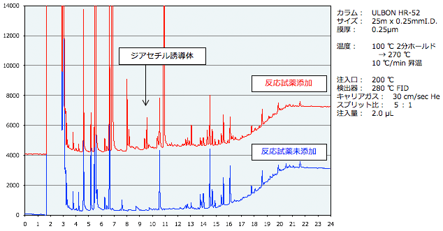 - FID検出器で50ppbのジアセチルが定量可能です。