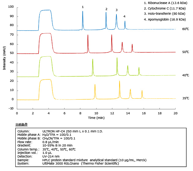 ULTRON HF-C4 カラム温度の影響 (タンパク質混合物)