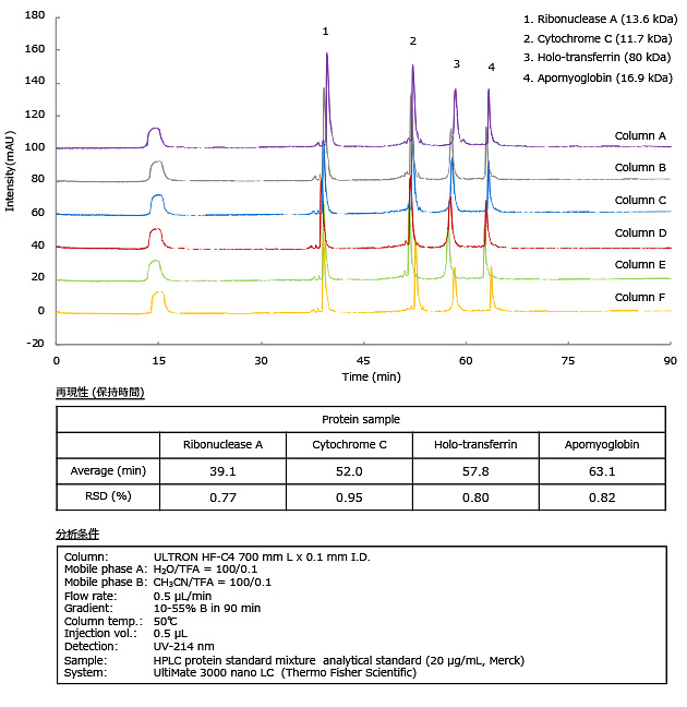 ULTRON HF-C4 カラム間再現性 (タンパク質混合物)