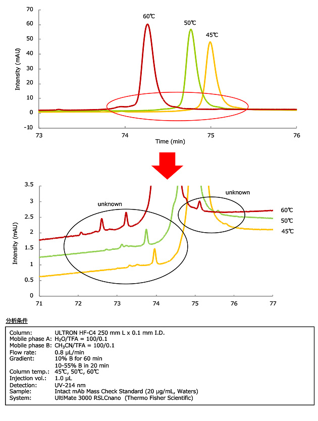 ULTRON HF-C4 モノクローナル抗体分析におけるカラム温度の影響