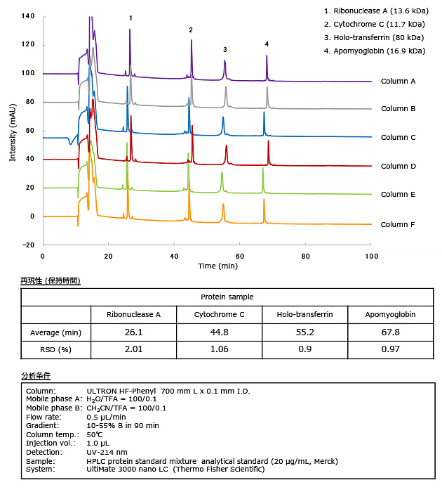 ULTRON HF-Phenyl カラム間再現性 (タンパク質混合物)